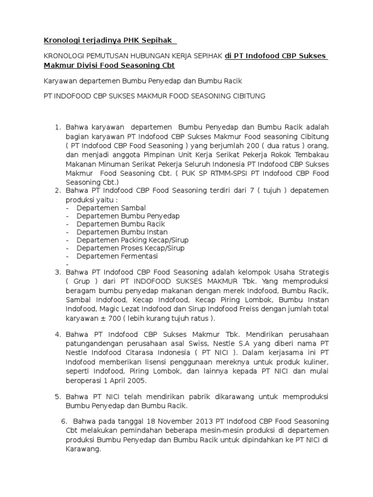 Kronologi Terjadinya Phk Sepihak Di Pt Indofood Pdf